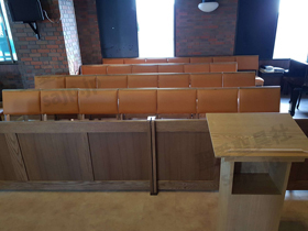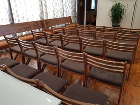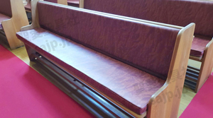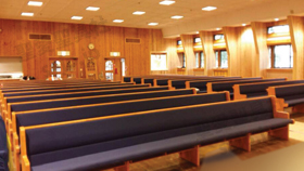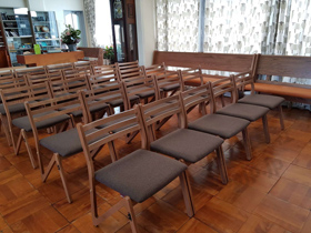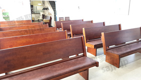 埼玉県 <東大宮福音自由教会> モデル:長椅子の座布団、背もたれのクッション貼り付け |