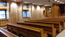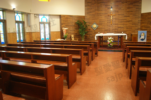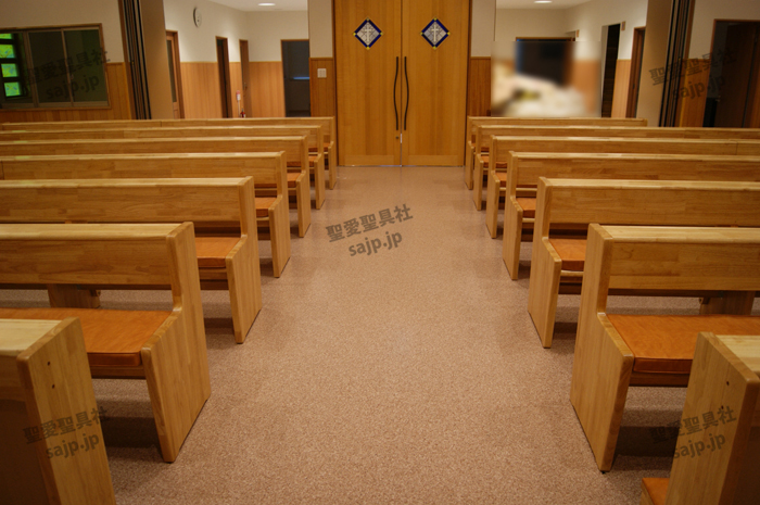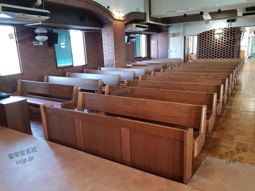 東京都 <カトリック高円寺教会> モデル :P-860(長椅子特注モデル)、PS-302、ついたて特注,