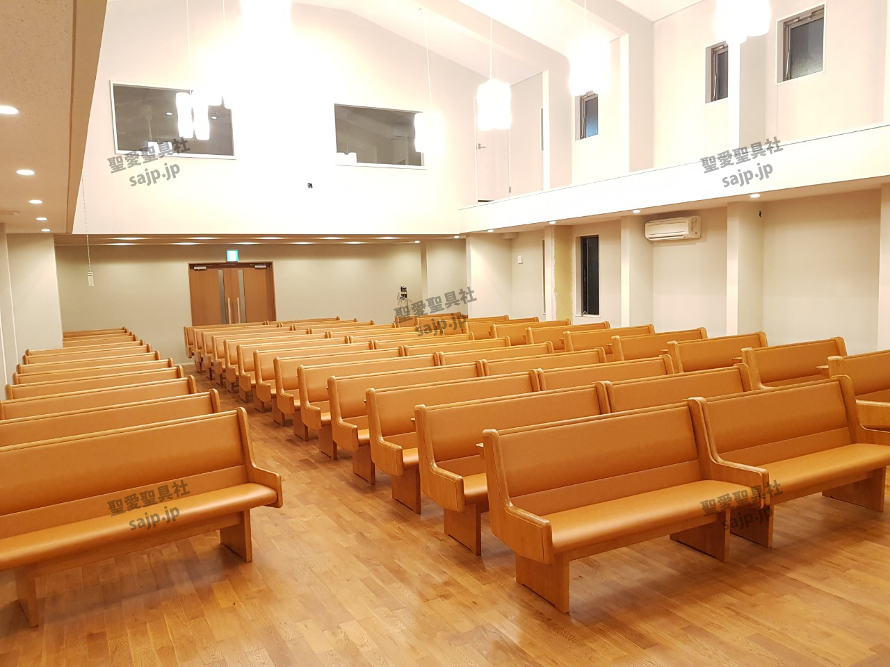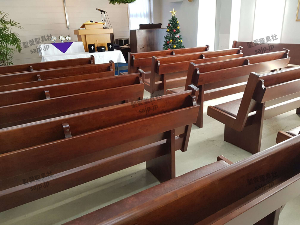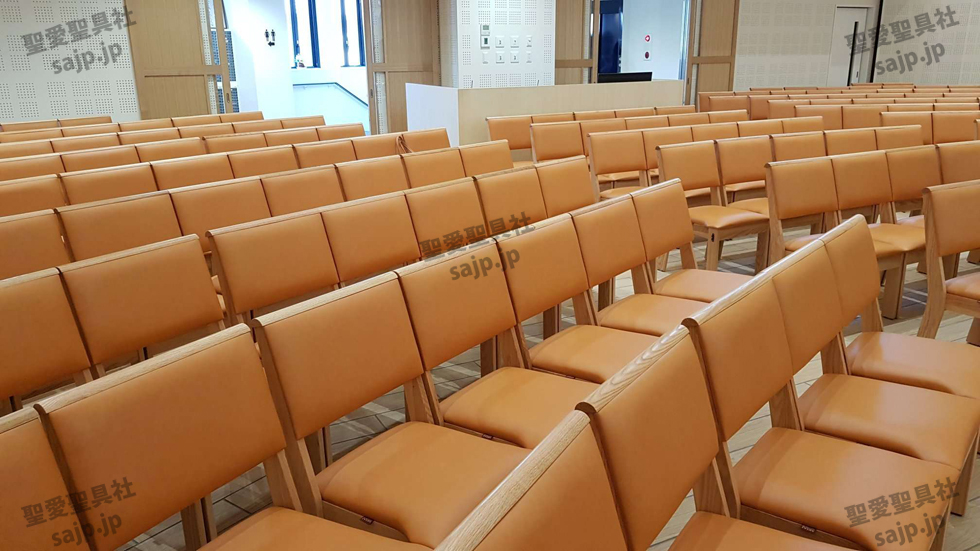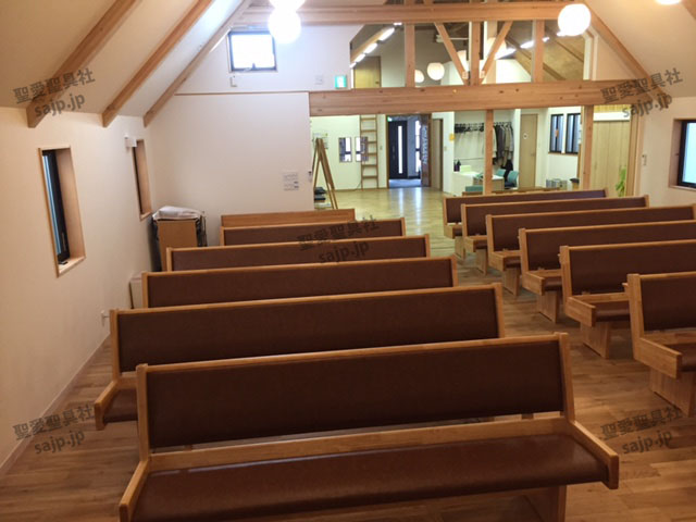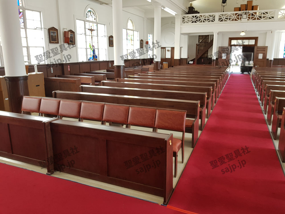 岐阜県 <カトリック大垣教会> モデル:長椅子 特注、レザークッション |